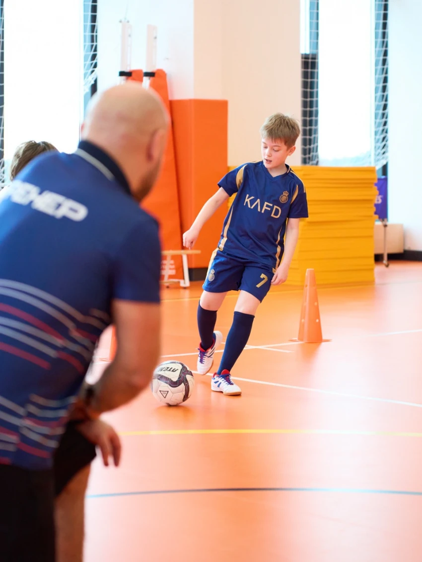 На тренировках юные футболисты знакомятся с игровым мышлением, развивают воображение и лидерские качества.